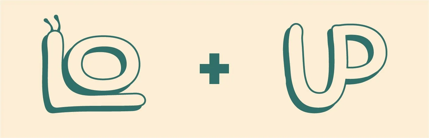 The “L” and “O” in “Slow” come together to form a snail, acting as a reminder of the slow and careful process of making hand-made ceramics.