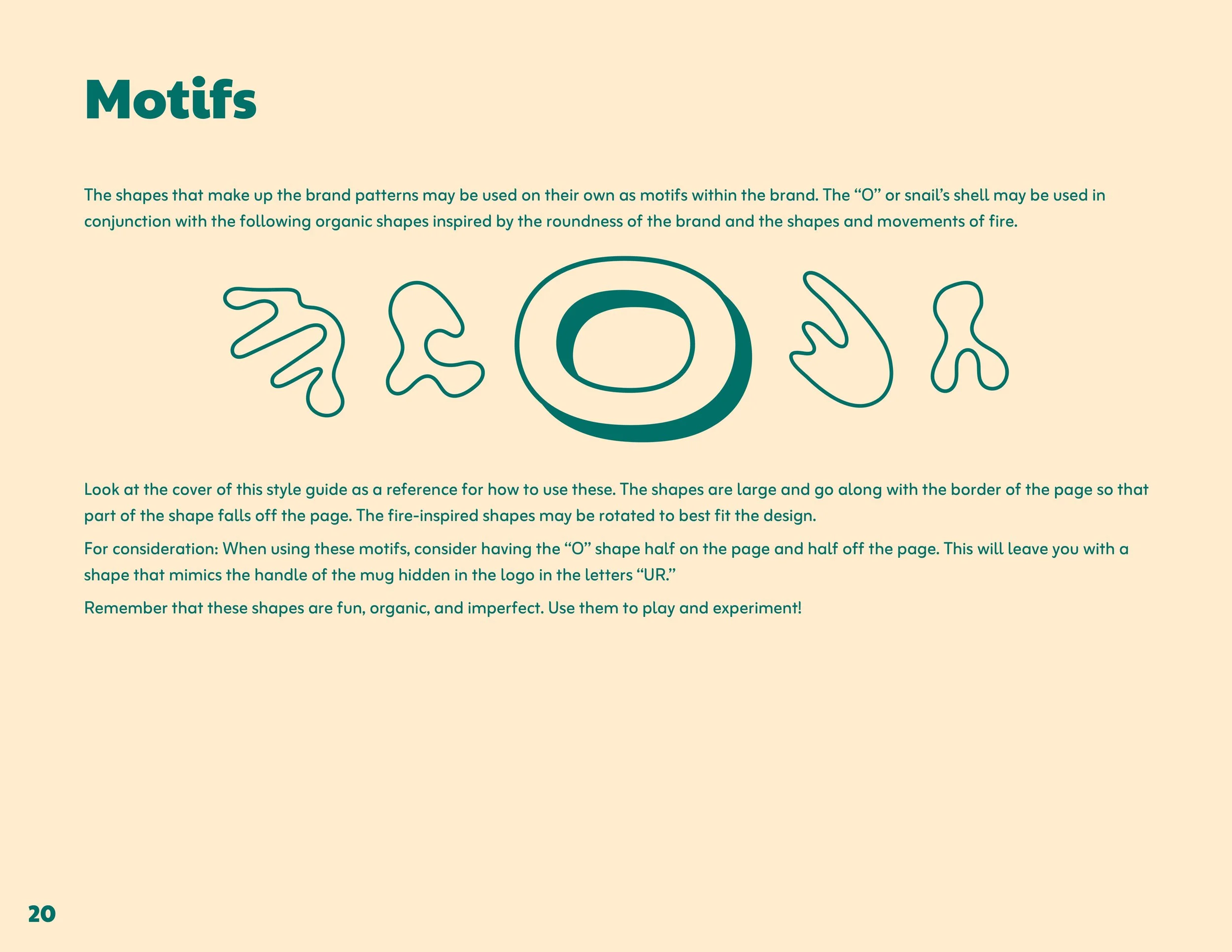 The graphic elements and design motifs used in the visual identity use rounded corners and abstract, organic shapes. These shapes refer to the fluidity of the creative process and the idea of concepts morphing and expanding over time.